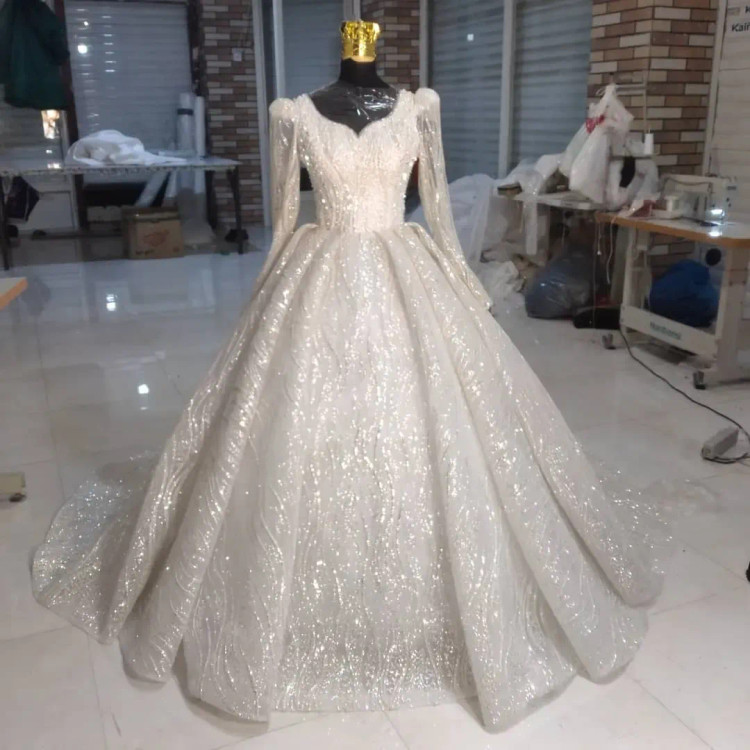 لباس عروس پفکی طرح طاووسی یقه دلبری