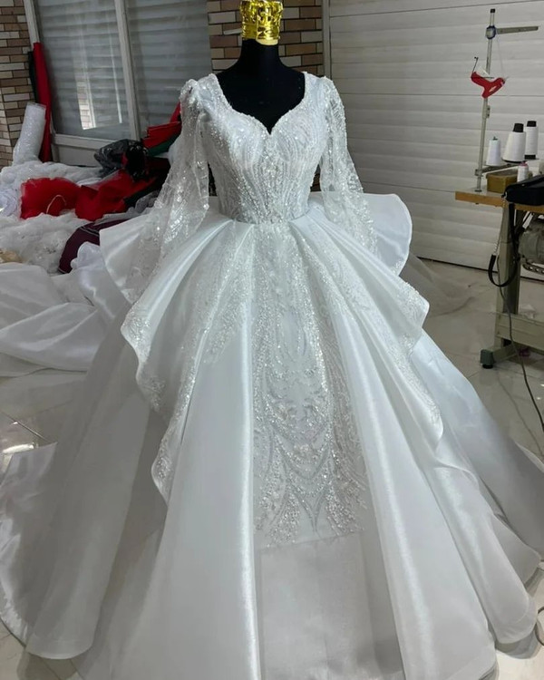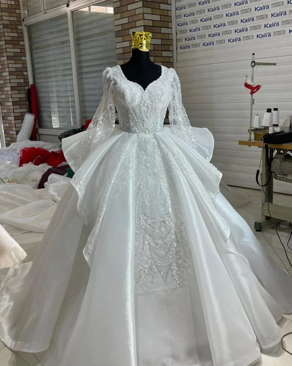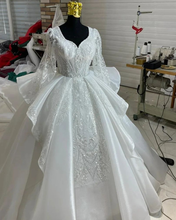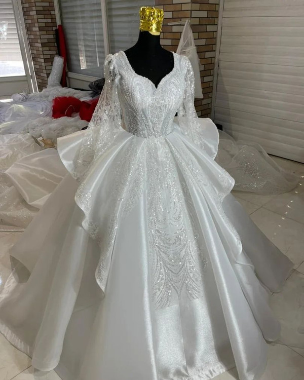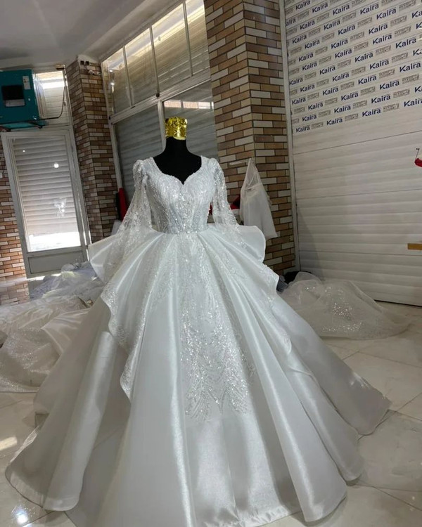 لباس عروس لچک دار انجولیکا با تزیین دانتل ترک دامن زونیکس دار با دنباله قابل سفارش در انواع رنگ و سایز و تعداد