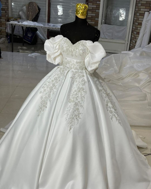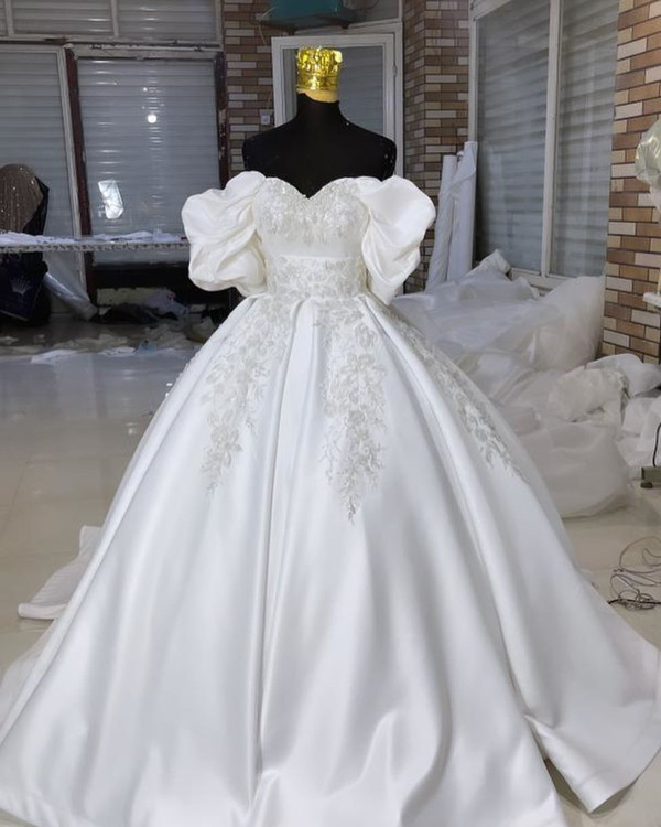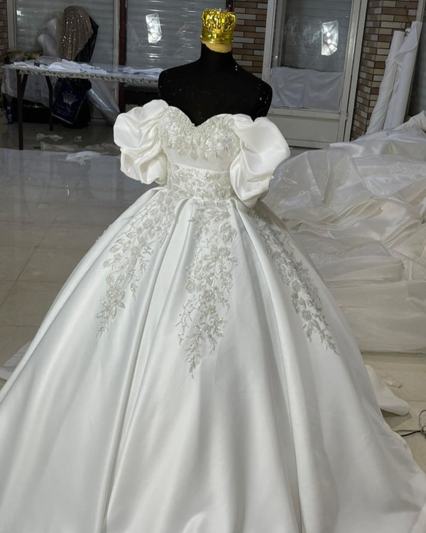 لباس عروس سه کلوش ساتن امریکایی با تزیینات دانتل اروپایی آستین پفی این لباس زیبا مزوندار عزیز بوده البته هم دوخت برای مزوندار داریم و هم عروس پارچه این کار ساتن امریکایی سه کلوش با تزیینات دانتل پرکار اروپایی هست قابل سفارش در انواع رنگ و سایز و تعدادپشت بندی فری سایز