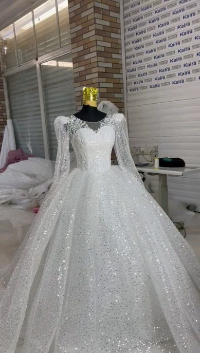 لباس عروس جسمیکو پولکی اورجینال تزئینات دانتل ترک