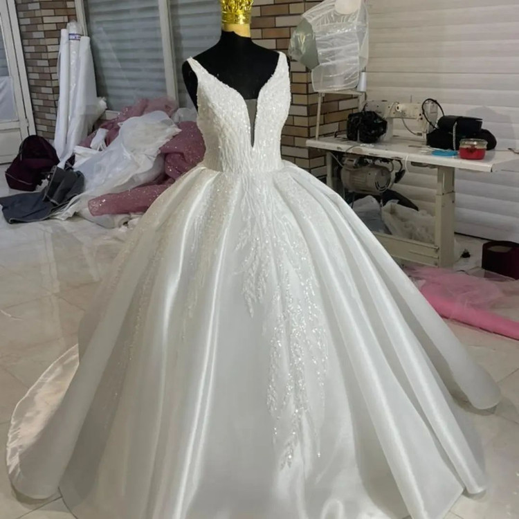 لباس عروس انجولیکا سایز بزرگ این لباس سایز ۵۲ با پارچه انجولیکا و تزئینات دانتل پرکار ترک هست قابل سفارش در انواع رنگ و سایز و تعداد مرتب و دقیق دوخت شده ولی چون سایز بزرگ هست برای مانکن بزرگه و بعد عکاسی متوجه شدیمپیلی هارو مرتب چون سایزش خیلی بزرگتر از مانکن هست نمیشد عکس بهتری گرفت