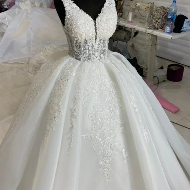 لباس عروس حریر دو کلوش با دانتل پرکار این لباس زیبا دو کلوش با پارچه حریر هست که روش با دانتل پرکار ترک تزئین شده قابل سفارش در انواع رنگ و سایز و تعداد فری سایز پشت بندی