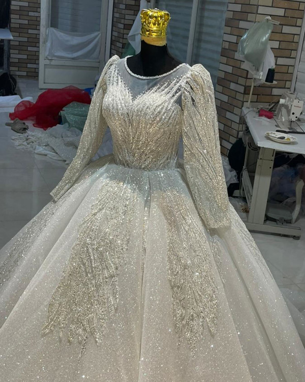 لباس عروس سه کلوش شاین با زونیکس تزیینات دانتل این لباس با پارچه شاین پفکی تزیین شده فوق العاده جذاب با درخشش بالاس قابل سفارش در انواع رنگ و سایز و تعداد