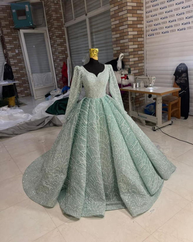 لباس عروس شاین پفکی رنگ سبز پاستیلی