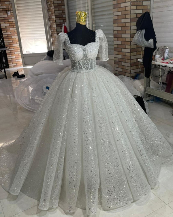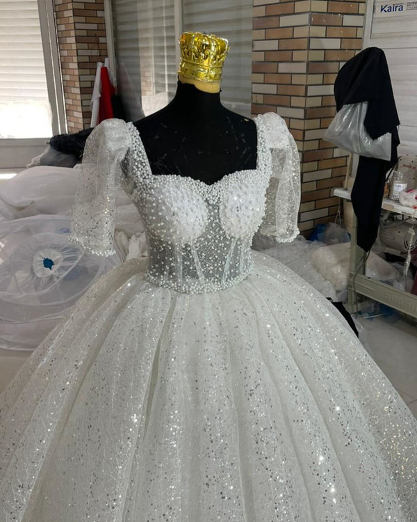 لباس عروس دانتل فرانسه سه کلوش چین تاپلکسی شبتون بخیر با این دلبر ناز این لباس زیبا با یه دانتل فرانسه با پولک دوخت شده بالاتنه تاپلکسی بدن نما هست که میشه پوشیده هم اجرا کرد قابل اجرا در انواع رنگ و سایز و تعداد پشت بندی فری سایز سفارش از طریق و واتساپ و سایت Lebasaroos.ir