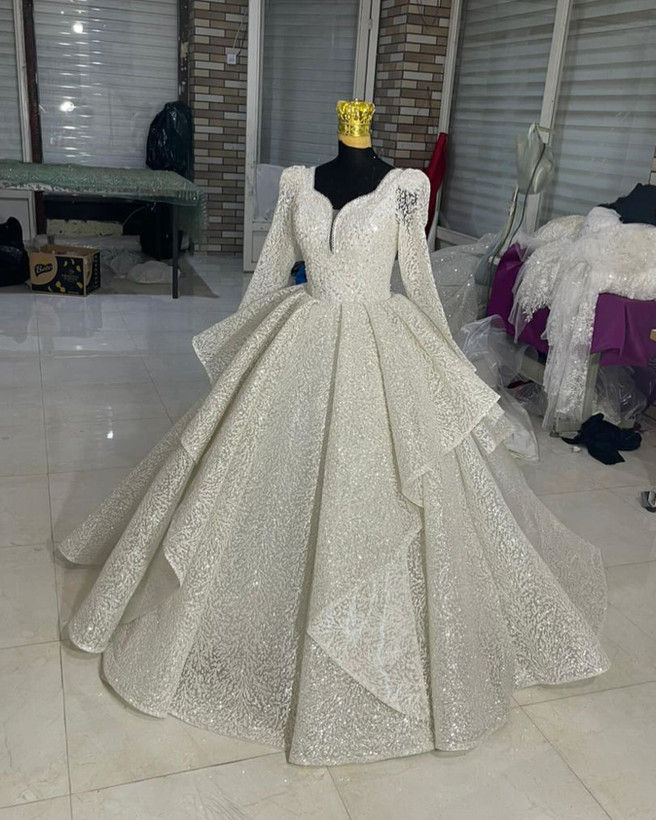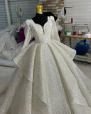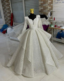 لباس عروس شاین پفکی شاخه ای ریز لچک بلنددار