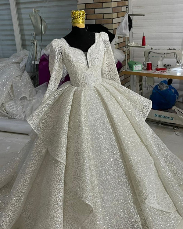 لباس عروس شاین پفکی شاخه ای ریز لچک بلند سلام شبتون بخیر یکی از مدل های پرطرفدار مون کارای لچک دار یا همون دامن دو طبقه است که با انواع پارچه اجراش کردیم تنخورشون خیلی عالی و جذابه پشت بندی فری سایز قابل اجرا در انواع رنگ و سایز و تعداد از طریق و واتساپ و سایت Lebasaroos.ir