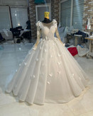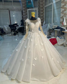 لباس عروس حریر ترک با تزیینات دانتل پروانه کد۳۰۲