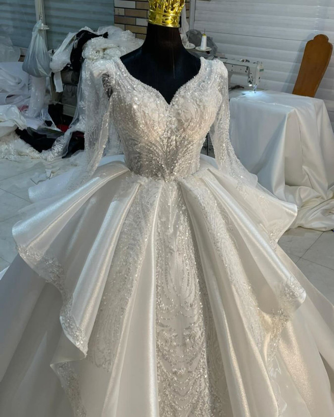 لباس عروس لچک دار با پارچه انجولیکا تزیینات دانتل ترک کد ۳۰۷