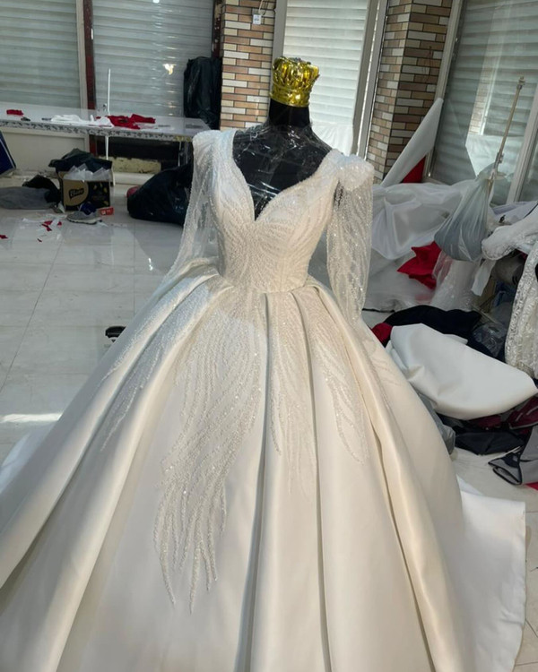 لباس عروس لچک دار با پارچه انجولیکا تزیینات دانتل ترک کد۳۰۷ سلام وقتتون بخیر این مدل زیبا با پارچه انجولیکا دوخت شده رنگ کاملا سفید هست با دانتل پرکار تریین شده خیلی شیک و تن خور عالی هست پشت بندی فری سایز قابل اجرا در انواع رنگ و سایز و تعداد از طریق واتساپ و و سایت Lebasaroos.ir