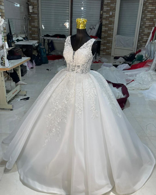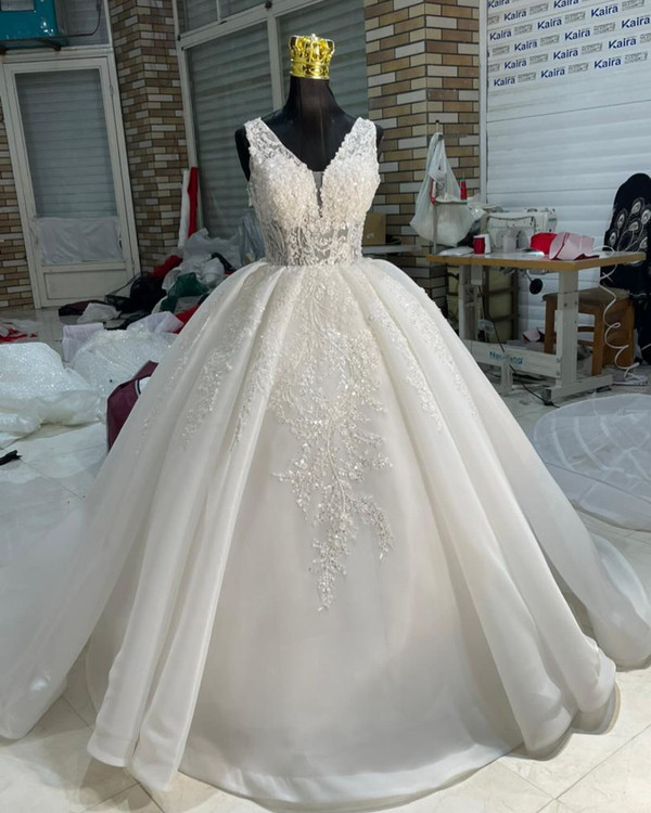 لباس عروس حریر دو کلوش با دانتل پرکار کد ۳۱۴ سلام شبتون بخیر این لباس زیبا دو کلوش با پارچه حریر هست که روش با دانتل پرکار ترک تزئین شده قابل اجرا در انواع رنگ و سایز و تعداد فری سایز پشت بندی سفارش از طریق و واتساپ و سایت Lebasaroos.ir