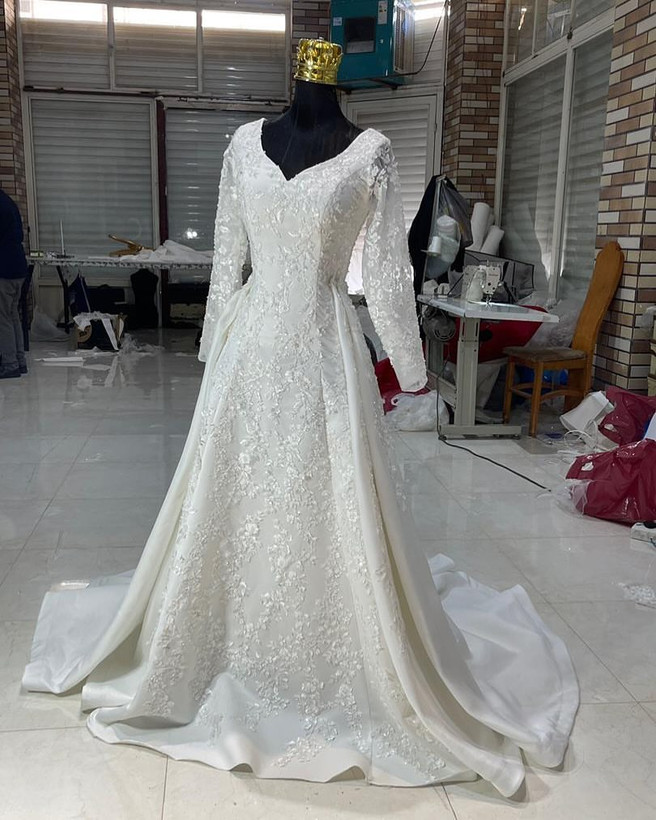 لباس عروس دو دامنه حریر و دانتل ترک کد ۳۲۹ سلام وقتتون بخیر این مدل زیبا با پارچه حریر و ساتن دوخت شده رنگ کاملا سفید هست با تزیینات دانتل پرکار ترک تن خور عالی خیلی ترند هست و اروپایی پشت بندی فری سایز قابل اجرا در انواع رنگ و سایز و تعداد سفارش از طریق واتساپ و و سایت Lebasaroos.ir