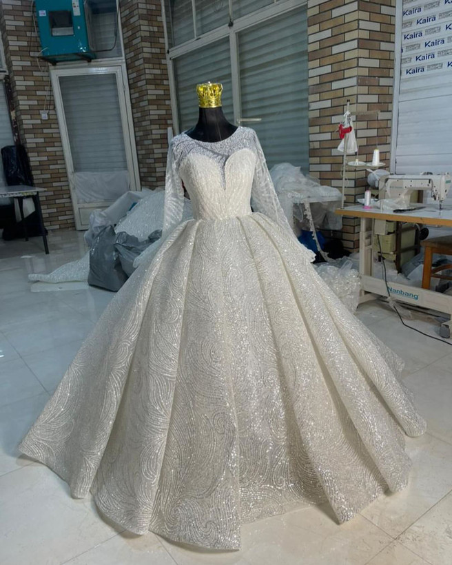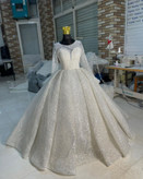 لباس عروس شاین پفکی یقه پرکار کد ۳۱۹