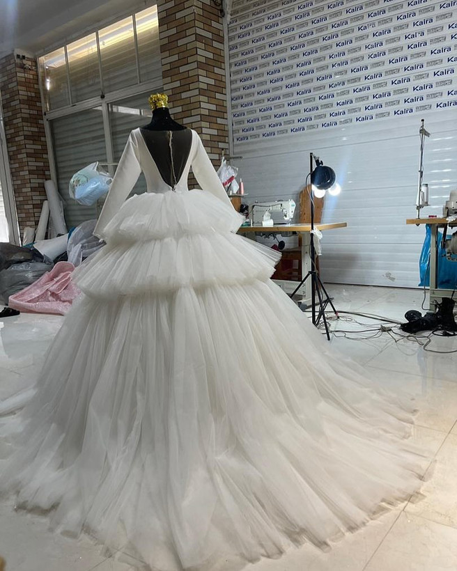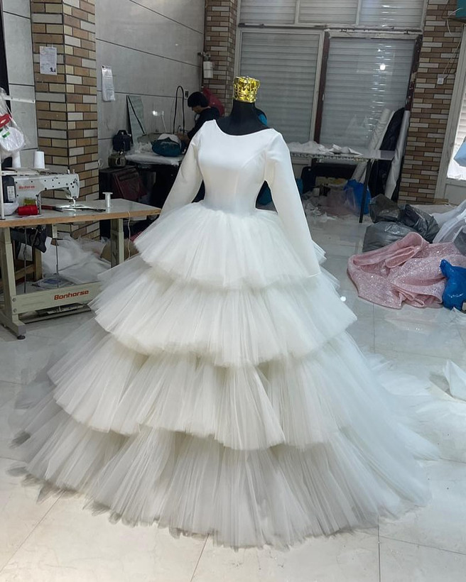 لباس عروس تور طبقاتی کد ۳۳۸ سلام وقتتون بخیر این لباس زیبا با تور هست که یه کار شیک و اروپایی هست قابل اجرا در انواع رنگ و سایز و تعداد فری سایز پشت بندی سفارش از طریق و واتساپ و سایت Lebasaroos.ir