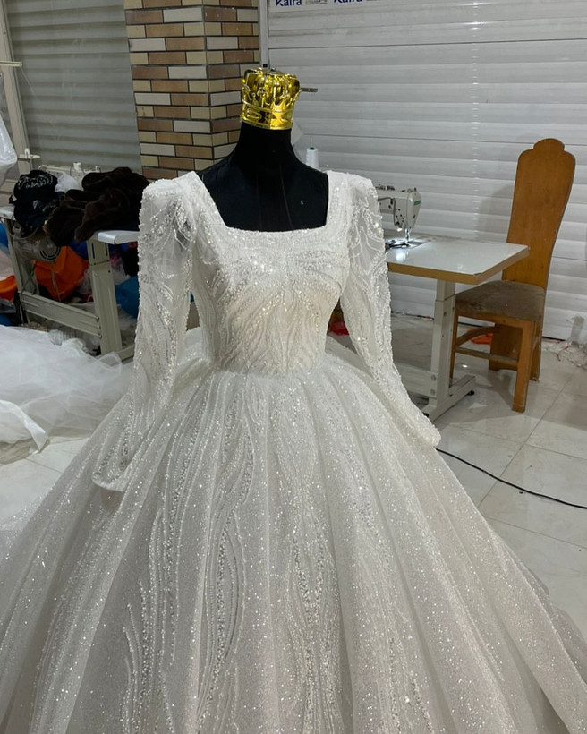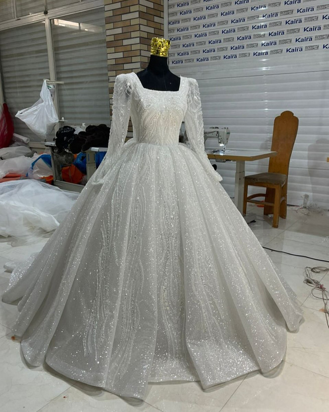 لباس عروس شاین دو کلوش با تزیینات دانتل کد ۳۵۴ سلام وقتتون بخیر این مدل با شاین دوخت شده و درخشش خیلی زیادی داره زیر کار زونیکس خورده برای مقاومت و هم فرم زیبای لباس با حجم زیادی از دانتل تزیین شده پشت بندی فری سایز قابل اجرا در انواع رنگ و سایز و تعداد ارسال به کلیه نقاط داخل و خارج سفارش طریق واتساپ و سایت Lebasaroos.ir #لباس_عروس_مجلل
