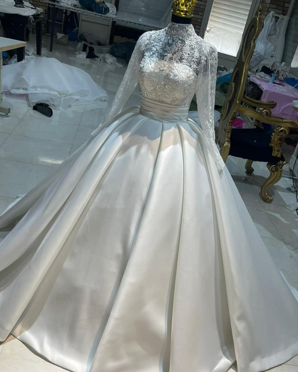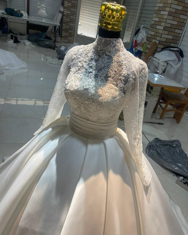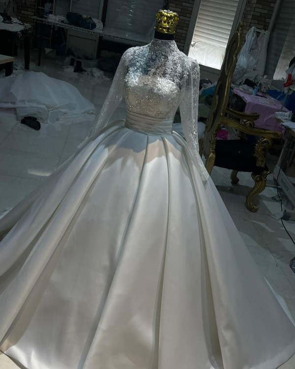 لباس عروس ساتن دو کلوش با تزیینات دانتل کد 357 سلام وقتتون بخیر این مدل با ساتن امریکایی دوخت شده زیر کار زونیکس خورده برای مقاومت و هم فرم زیبای لباس با دانتل تزیین شده پشت بندی فری سایز قابل اجرا در انواع رنگ و سایز و تعداد ارسال به کلیه نقاط داخل و خارج از از طریق واتساپ و سایت Lebasaroos.ir #لباس_عروس_مدرن