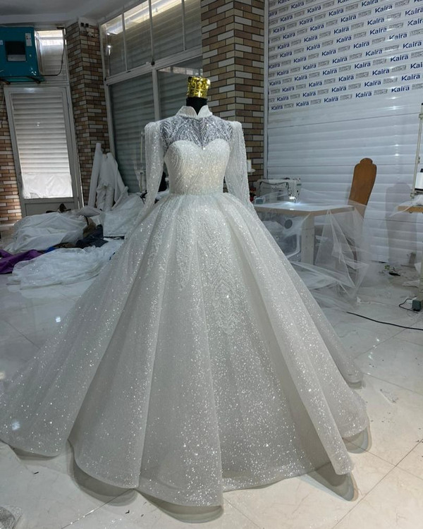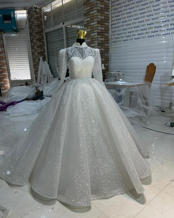 لباس عروس شاین دو کلوش با تزیینات دانتل سایز بزرگ کد ۳۷۰ سلام وقتتون بخیر این مدل با شاین دوخت شده و درخشش خیلی زیادی داره زیر کار زونیکس خورده برای مقاومت و هم فرم زیبای لباس با حجم زیادی از دانتل تزیین شده پشت بندی فری سایز قابل اجرا در انواع رنگ و سایز و تعداد ارسال به کلیه نقاط داخل و خارج از از طریق واتساپ و سایت Lebasaroos.ir #لباس_عروس_مجلل