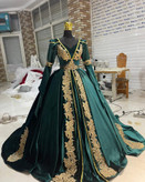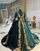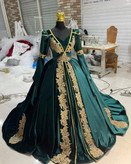 لباس عروس مخمل سبز با تزیینات دانتل کد ۳۶۷
