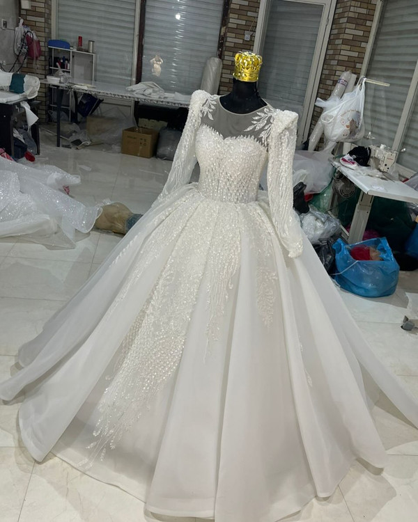 لباس عروس حریر سه کلوش با دانتل پرکار کد ۳۶۲ سلام وقتتون بخیر این لباس زیبا با پارچه حریر هست که روش با دانتل تزئین شده قابل اجرا در انواع رنگ و سایز و تعداد فری سایز پشت بندی ثبت از طریق و واتساپ و سایت Lebasaroos.ir ٓستین_دار#لباس_عروس#لباسعروس