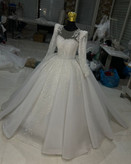 لباس عروس حریر سه کلوش با دانتل پرکار کد ۳۶۲