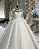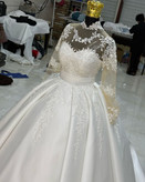 لباس عروس ساتن امریکایی با تزیینات دانتل برگی کد ۳۸۱