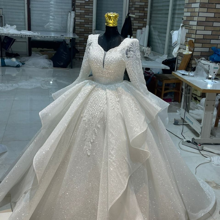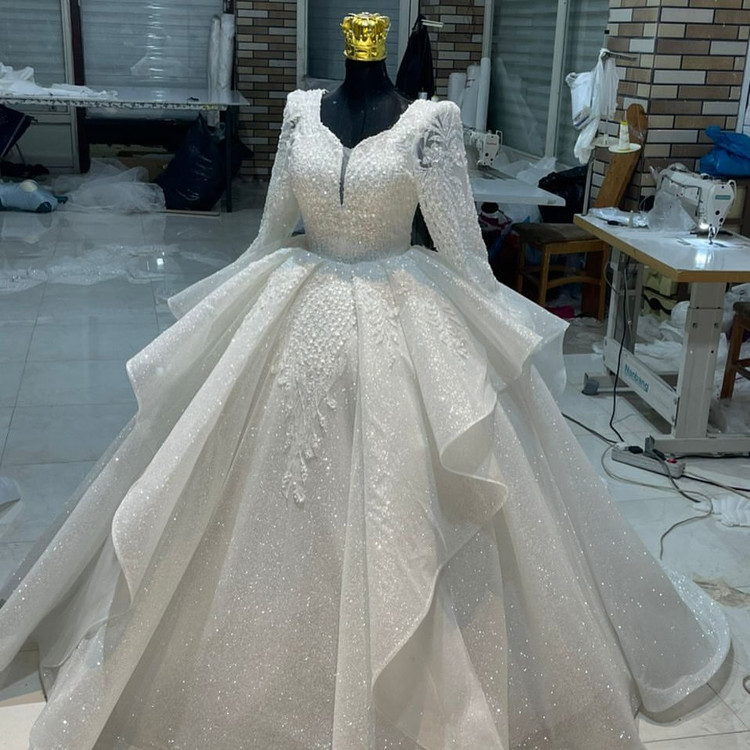 لباس عروس شاین با زونیکس لچک دار تزیینات دانتل پرکار ترک کد ۳۷۳ هرچی نگاه میکنم سیر نمیشم از این همه زیبایی لباس عروس دوخت شده با پارچه شاین و تزیینات دانتل پرکار پشت بندی فری سایز قابل اجرا در انواع رنگ و سایز و تعداد از طریق و سایت و واتساپ Lebasaroos.ir