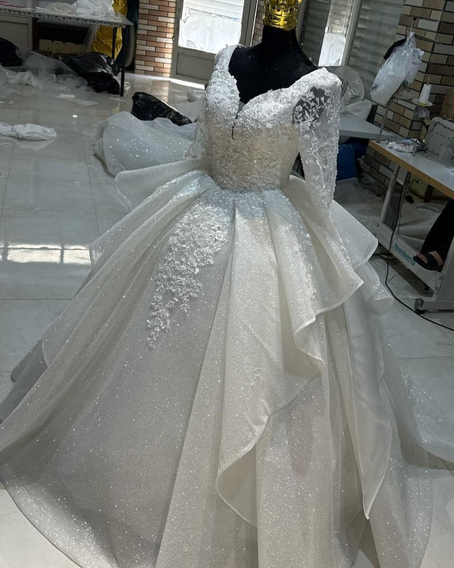 لباس عروس شاین لچکدار با دانتل پرکار کد ۳۸۷