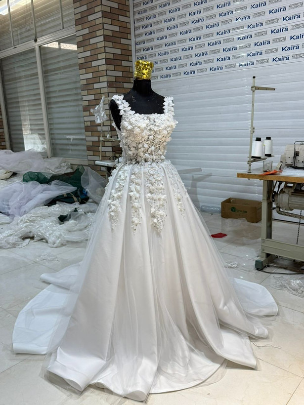 لباس عروس ساتن با تزیین دانتل کد ۴۰۶