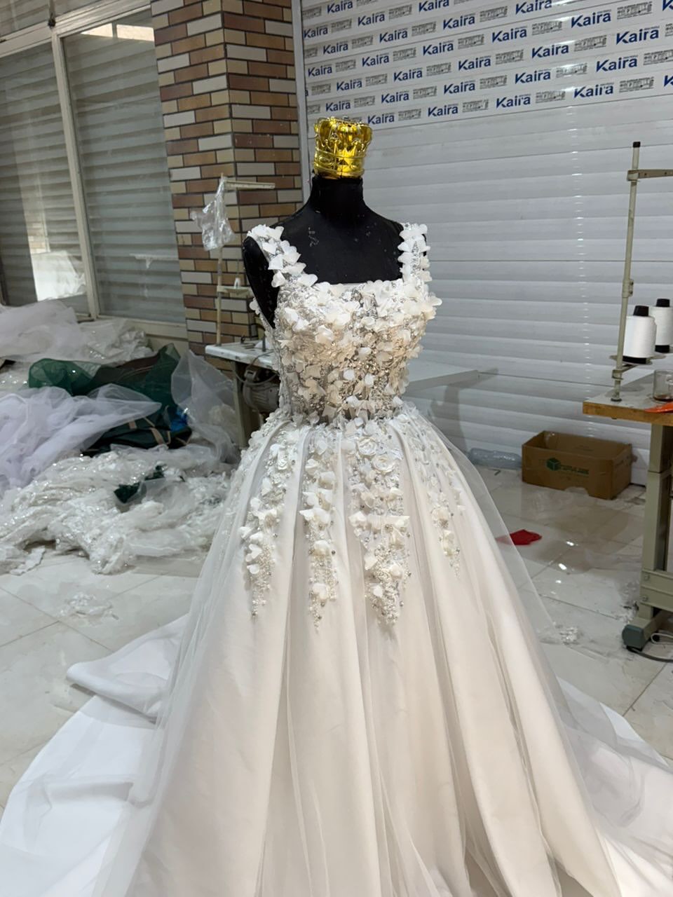 سلام وقتتون بخیر این لباس زیبا با پارچه ساتن امریکایی هست تزیینات دانتل طرح گل و تزیینات شکوفه و سنگ در دامن و بالاتنه باعث جذابیت بیشترش شده قابل اجرا در انواع رنگ و سایز و تعداد فری سایز پشت بندی ثبت از طریق و واتساپ و سایت Lebasaroos.ir