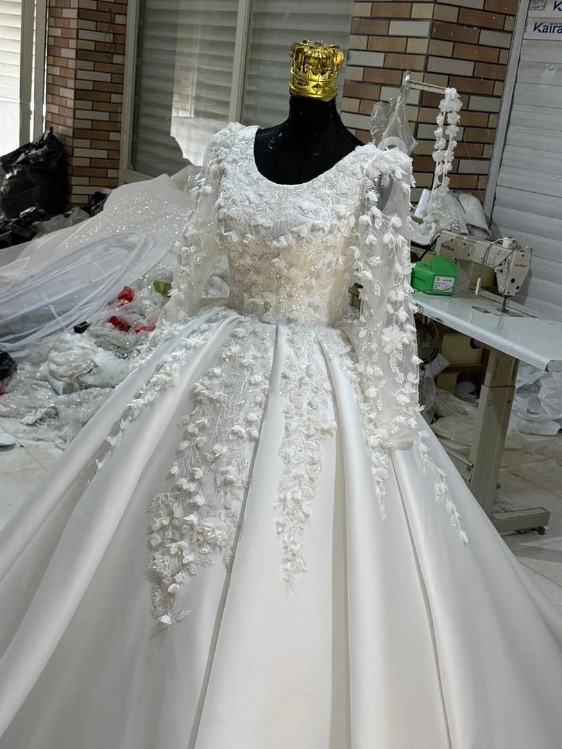 لباس عروس ساتن با تزیین دانتل کد ۴۰۴ سلام وقتتون بخیر این لباس زیبا با پارچه ساتن امریکایی هست تزیینات دانتل طرح گل در دامن و بالاتنه باعث جذابیت بیشترش شده قابل اجرا در انواع رنگ و سایز و تعداد فری سایز پشت بندی ثبت از طریق و واتساپ و سایت Lebasaroos.ir