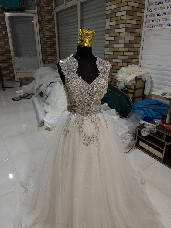 لباس عروس شاین با تزیین سنگ و پنل کد ۴۱۰ سلام وقتتون بخیر این لباس زیبا با پارچه شاین هست تزیینات پنل و سنگ در دامن و بالاتنه باعث جذابیت بیشترش شده قابل اجرا در انواع رنگ و سایز و تعداد فری سایز پشت بندی ثبت از طریق و واتساپ و سایت Lebasaroos.ir