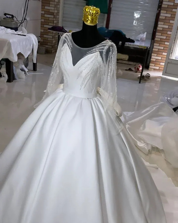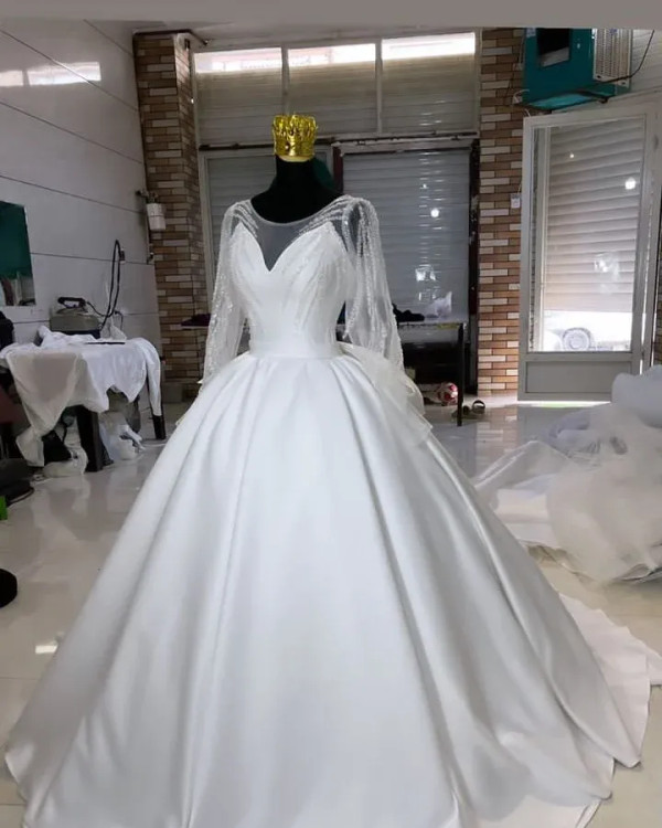 لباس عروس ساتن سه کلوش با تزئینات دانتل عربی این مدل با ساتن آمریکایی دوخته شده و تزیینات خطی در کنار سادگی لباس باعث جذابیت لباس شده یه سبک اروپایی جذاب دوخت در انواع رنگ و سایز و تعداد امکان پذیره